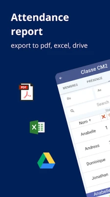 Download and export data in an excel sheet to track attendances and share it easily for more visibility (excel export, pdf export).